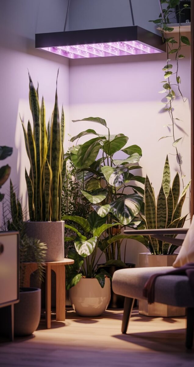 You don’t need expensive setups. Even a single LED grow bulb can support several low-light plants.